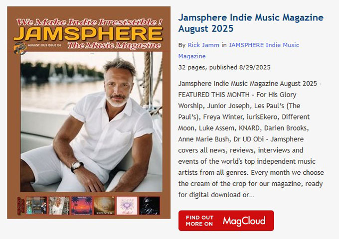 Jamsphere Indie Music Magazine August 2025 – FEATURED THIS MONTH – For His Glory Worship, Junior Joseph, Les Paul’s (The Paul’s), Freya Winter, iurisEkero, Different Moon, Luke Assem, KNARD, Darien Brooks, Anne Marie Bush, Dr UD Obi – Jamsphere covers all news, reviews, interviews and events of the world’s top independent music artists from all genres. Every month we choose the cream of the crop for our magazine, ready for digital download or to be delivered as a physical printed copy right to your door. Copies are also distributed to industry professionals and music’s top tastemakers, as we continue our quest to make indie irresistible!